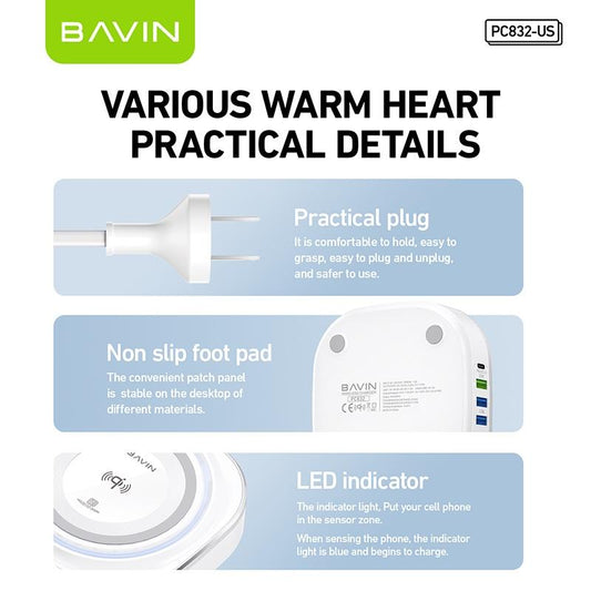 BAVIN PC1069 Portable Multi-functional 6 in 1 Wireless Docking Charger Station Smart Watch Mobile