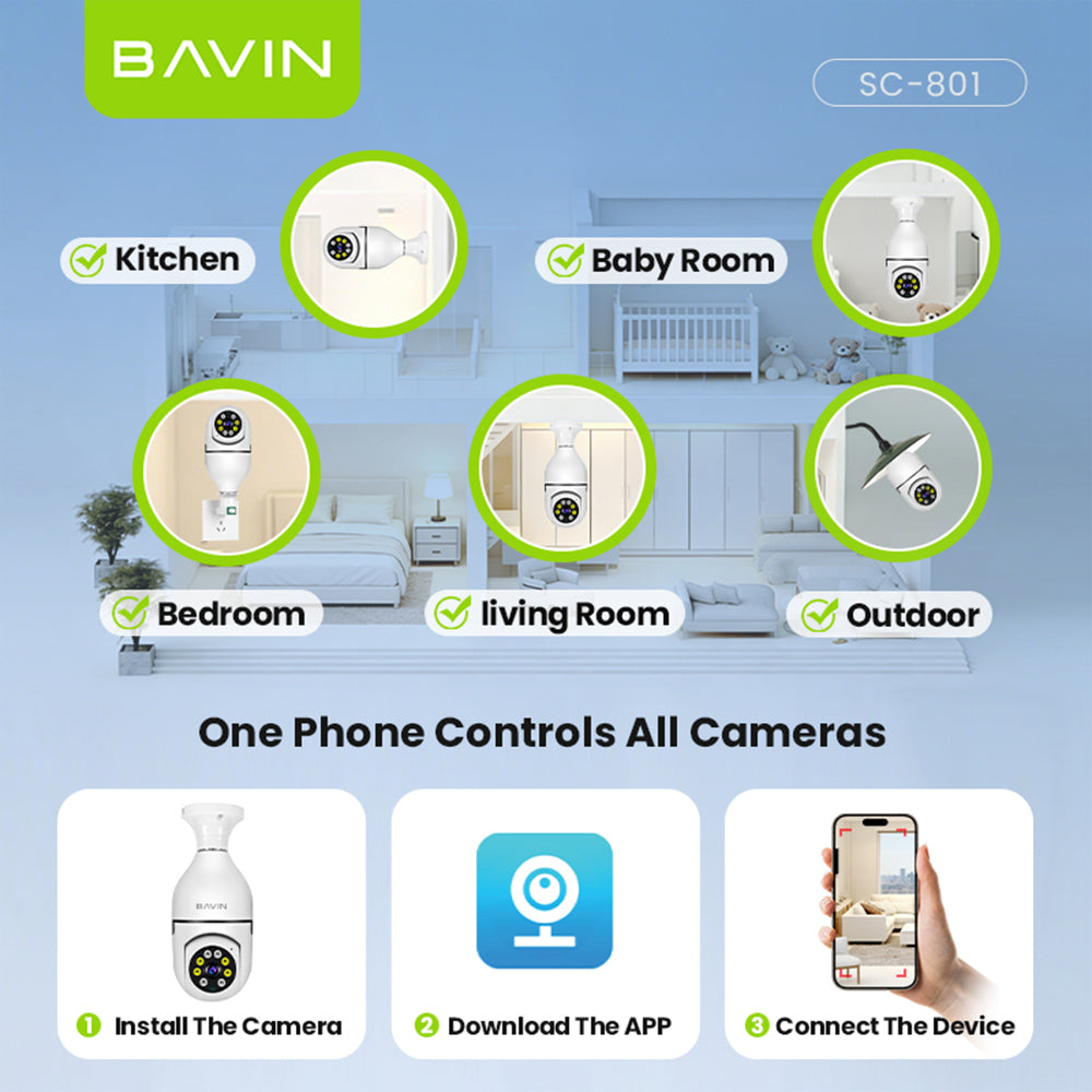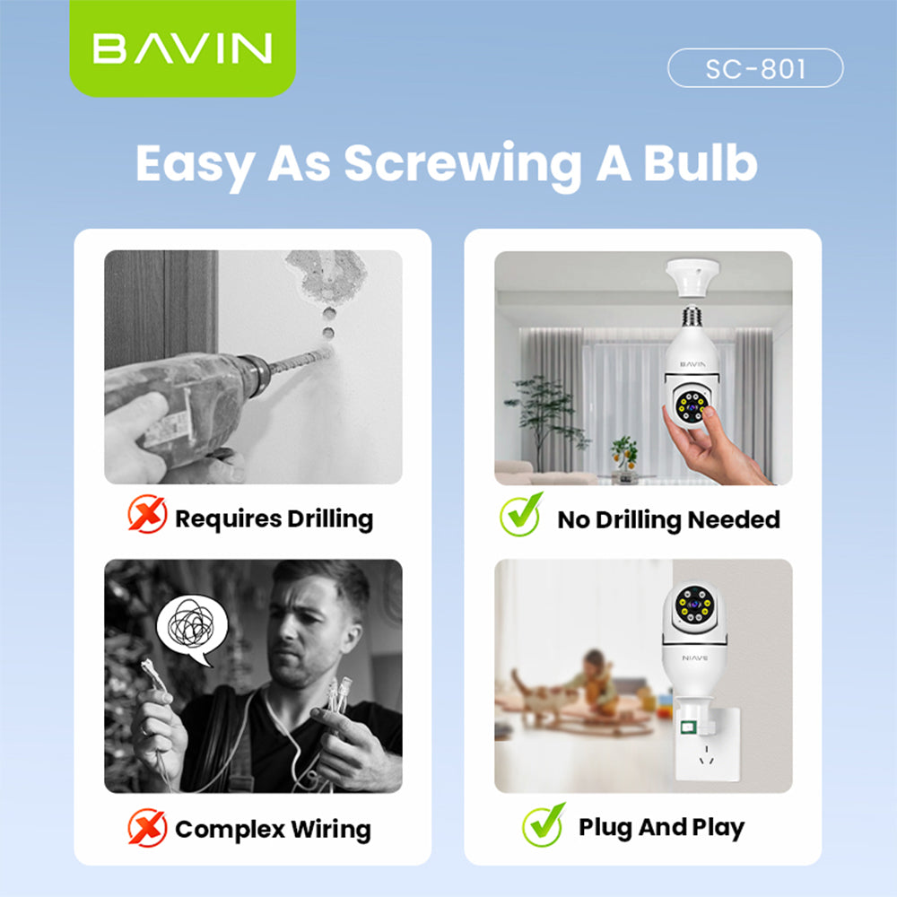 BAVIN SC801 Smart Security Lens Bulb CCTV Camera 3MP WiFi Camera w/Motion Tracking,Alarm System
